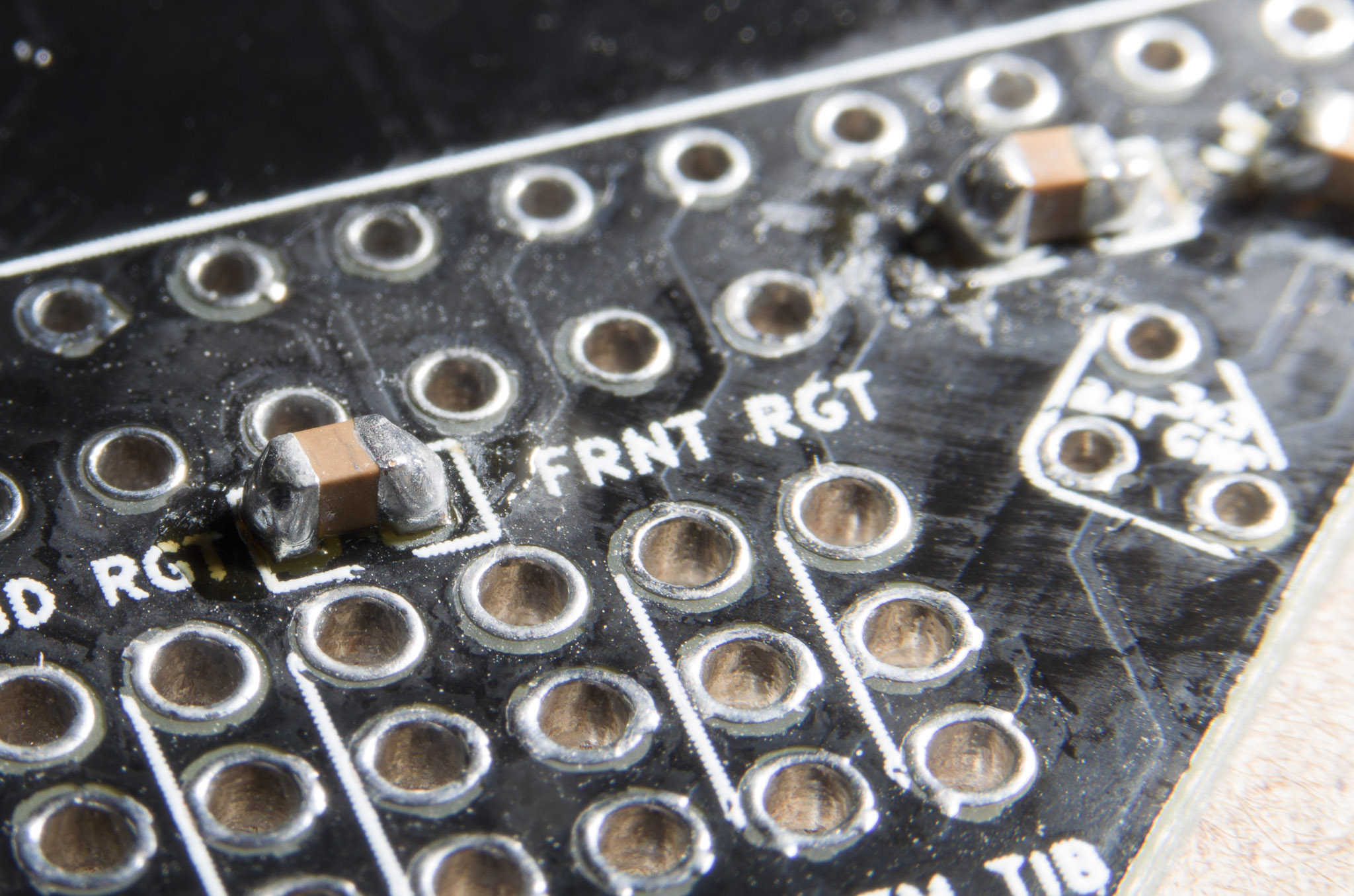 This was my first try at SMD components, using an iron. It turned out quite well, but I figured I would pass on some tips that I have learned to others trying to do the same thing. These tips are primarily aimed towards those soldering the Stubby control board, but they could probably be generalized to most similar projects. All soldering was done with a normal soldering iron; no reflow required. I used a magnifier / light stand, which I found helped, although other people have done this without it. It took me about 2 hours to do all the soldering by hand.