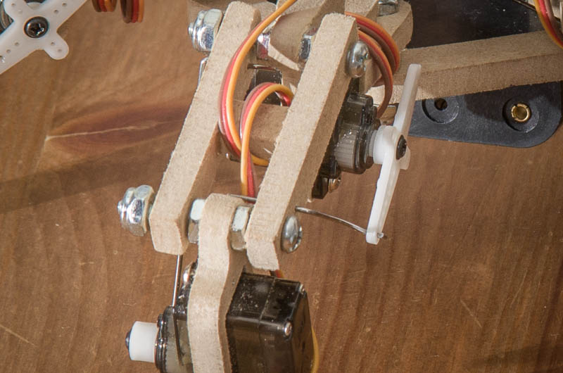 Bend and cut the push rods. They should be cut in the shape as indicated below. For the lengths, look at Leg.h for what I used (the exact lengths are not critical, although whatever length you pick, you should ensure that all the rods are the same length, or else IK will not work properly).