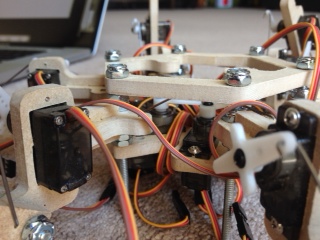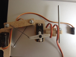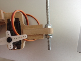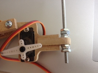 - Put the servo layer onto the two spacer legs. Put lock nuts overtop, but not too tightly (they should rotate freely)