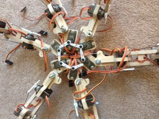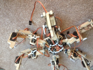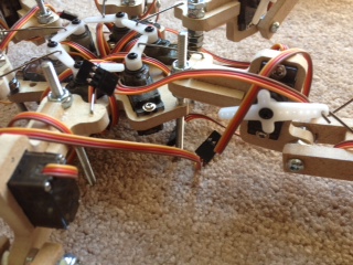- Attach the servo horns, trying to match the angles specified in Leg.h as closely as possible. (These angles can be fine tuned using calibration).