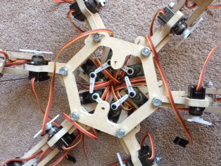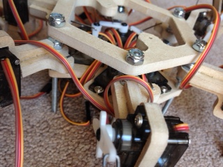 - Two of the six legs should also have 1 normal nut underneath the coxa assembly and 1 lock nut on top of the coxa assembly, to act as spacers. (The picture is incorrect and shows two normal nuts on top instead of one lock nut)